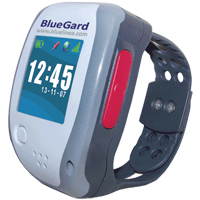La montre Bluelinea fournit un service d'assistance extérieure et un contrôle de la zone de d'éloignement. Ce petit bracelet-montre est relié 24h/24 et 7j/7 à une plate-forme d'assistance, et non à un GPS personnel. La famille ne peut donc pas surveiller le malade elle-même. En revanche, une distance d'éloignement du foyer est déterminée par les proches. Ainsi, lorsque le malade sort du périmètre défini, la montre envoie un signal à la plateforme d'assistance. Les proches, alertés par les équipes d'assistance, sont guidés jusqu'au malade si besoin est. L'autonomie est de courte de durée pour une montre (2 jours) mais se recharge chez soi, n'impliquant aucun frais supplémentaires. Le bracelet GPS Bluelinea adopte un style sportif, épousant l'esprit des montres chrono. Il ne coute que l'abonnement à la plateforme d'assistance, de trois mois minimum, qui s'élève à 69€ mensuels.